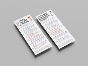 The most sought-after materials include sleep and general mental health cards, plus an accordion brochure with QR codes connecting people to various mental health resources.